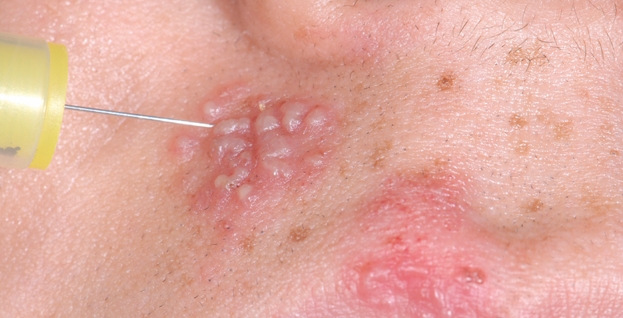 Nessa etapa, depois dos procedimentos iniciais e da anestesia tópica,“…é muito importante lembrar que deve haver cuidado extra na infecção cruzada por conta da alta carga viral presente no exsudato seroso. Assim, limpe a área cautelosamente e troque os equipamentos de proteção individual (EPIs) após a perfuração dessas vesículas.”